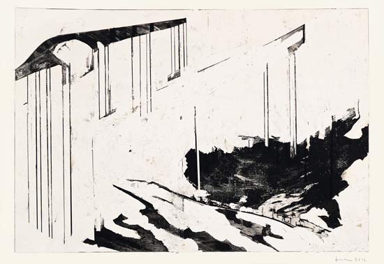 o.T. - Radierung, Kreide, Schleifpapier auf Büttenpapier - 72,5 x 104,5 cm - 2012