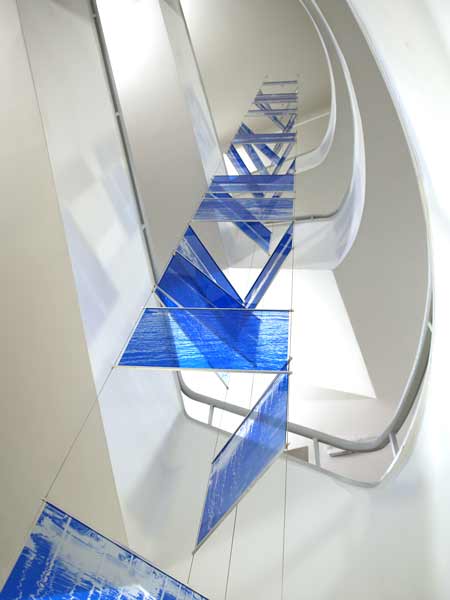 großen durchscheinende Platten winden sich inmitten des Treppenauges steil empor.