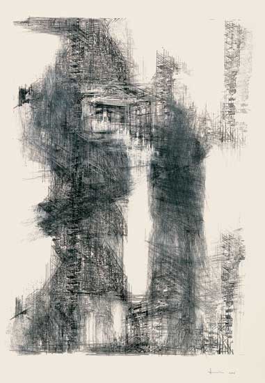 o.T. - Radierung, Monotypie, Kohle, Schleifpapier auf Büttenpapier, 159 x 111 cm - 2006