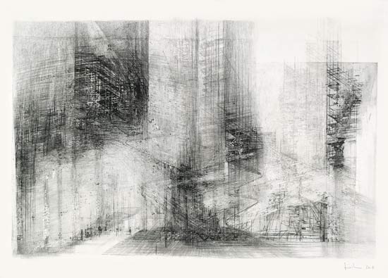 o.T. - Radierung, Monotypie, Kohle, Schleifpapier auf Büttenpapier - 76 x 106 cm - 2008